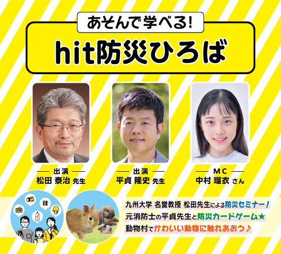 九州大学名誉教授・松田先生による防災授業や、元消防士による命を守る知恵を学ぶ防災カードゲームを開催。