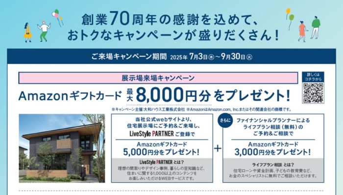 ダイワハウスでは創業70周年、夏の住宅フェアを実施中。