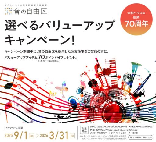 期間中は、音の自由区を採用した注文住宅をご契約の方に、