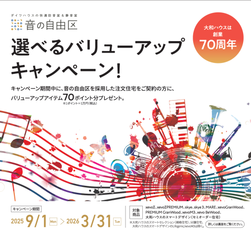 期間中は、音の自由区を採用した注文住宅をご契約の方に、