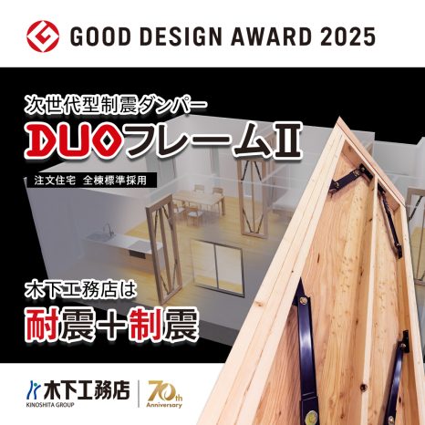 2025年度、木下工務店は『次世代型制震ダンパー「DUOフレームⅡ」』でグッドデザイン賞を受賞いたしました!✨