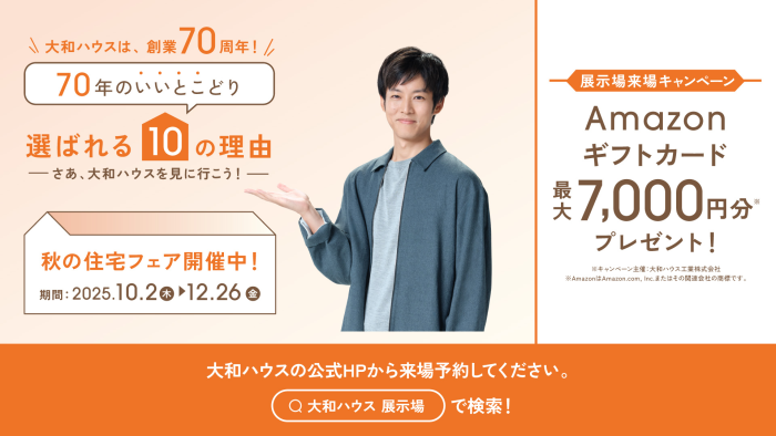 ダイワハウスでは創業70周年、秋の住宅フェアを実施中。
