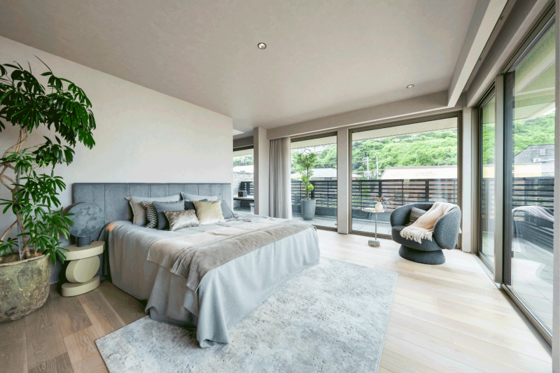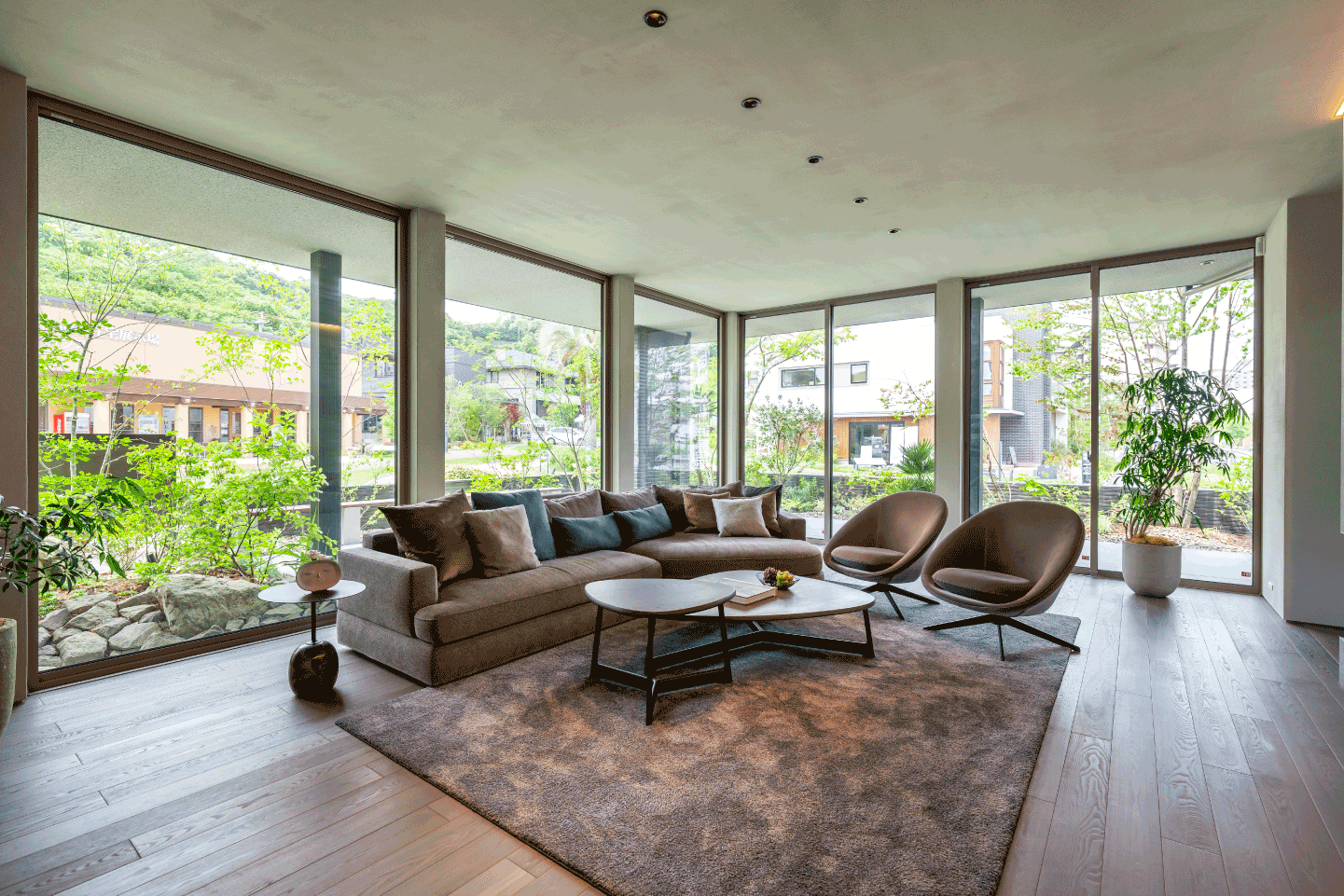 内装のトーンをそろえたホテルライクなデザイン。軒下へ繋がる大空間に包まれた大らかな暮らし。積水ハウスのファミリースイートを是非ご体感下さい。