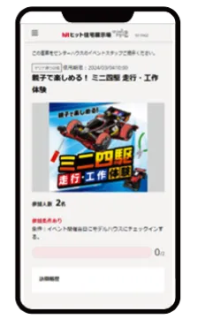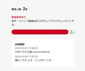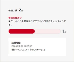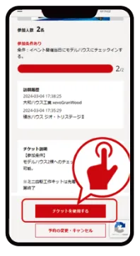 モデルハウスを見学し、参加必要数のチェックインをすることで、チケット使用(イベント参加)が可能になります。