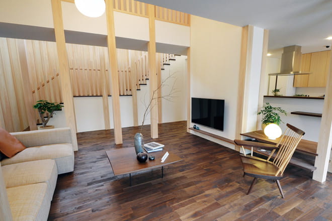 桧を中心に自然素材がつくる「くつろぎの人と木」