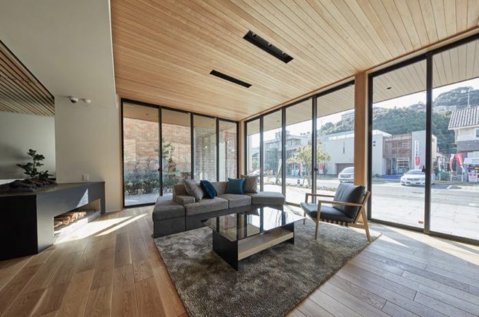 外部からのプライバシ―を確保しながら構造的にも強く解放的なパブリック大空間とした。垂直のBOXを組合せた都市型モダンの外観が街並みに融けこみます。