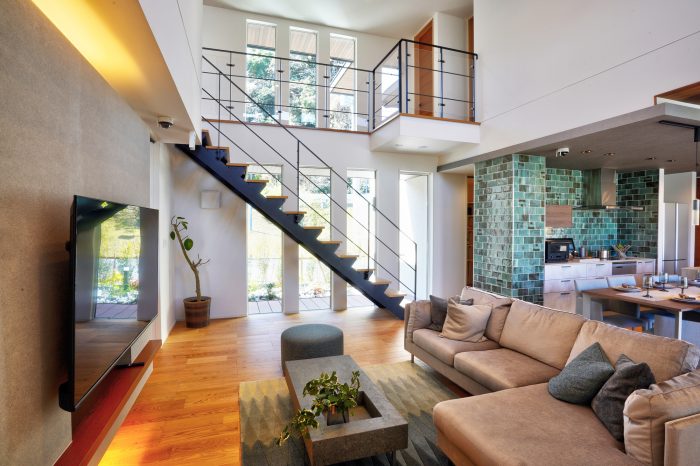横の拡がりもさることながら、縦の拡がりもそなえた大空間の邸宅はアーバンな暮らしをお届けします。