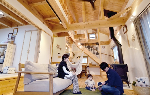 無垢の木の香りや肌触りに癒やされる毎日。「子どもに安心の素材ですし、心地よさや開放感が格別です」とCさん夫妻。