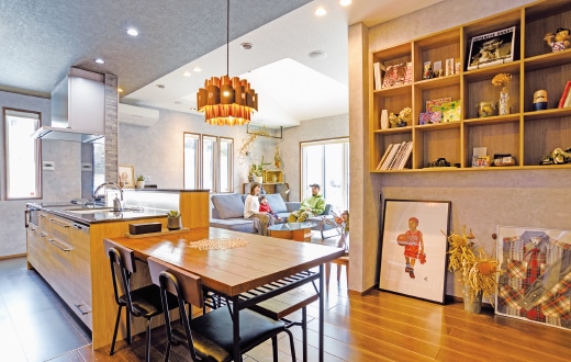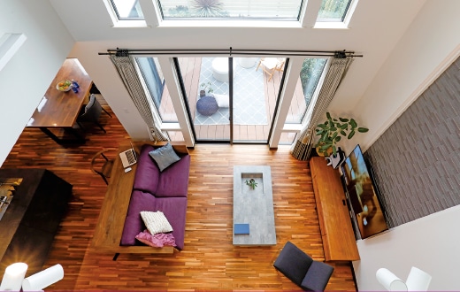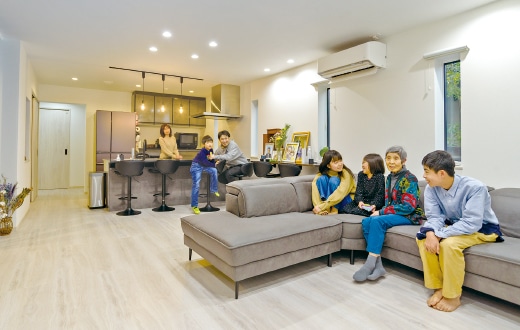 「子どもが自分の部屋にこもらず、自然と家族が集うLDKにしたかった。落ち着いた雰囲気ながら、開放感ある吹き抜けや空が見渡せる大きな窓が心地よく、納得の空間に仕上がりました」とA夫妻。