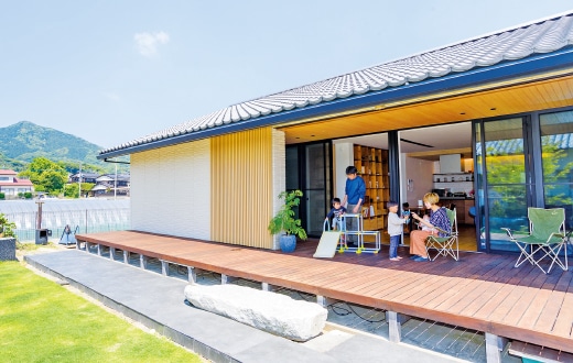明るい雰囲気の平屋を構えるBさん一家。「機能や将来のことを考え、建てるなら平屋と決めていました。庭も広くしたくて、土地探しに時間をかけました」と話します。